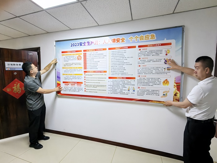 此外,公司在機(jī)關(guān)辦公場(chǎng)所的公共區(qū)域還懸掛了安全宣傳展板,向全體員工集中宣傳集團(tuán)公司的安全管理理念,安全紅線意識(shí)及安全常識(shí),進(jìn)一步推動(dòng)公司“安全生產(chǎn)月”活動(dòng)走深走實(shí),形成了“人人講安全”的濃厚氛圍。