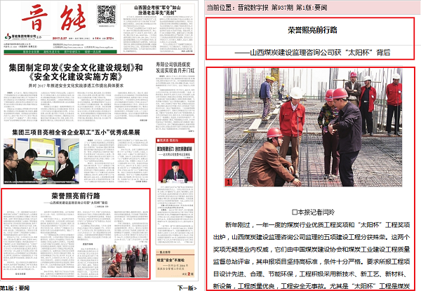 《晉能》報對我公司作專題報道《榮譽照亮前行路》