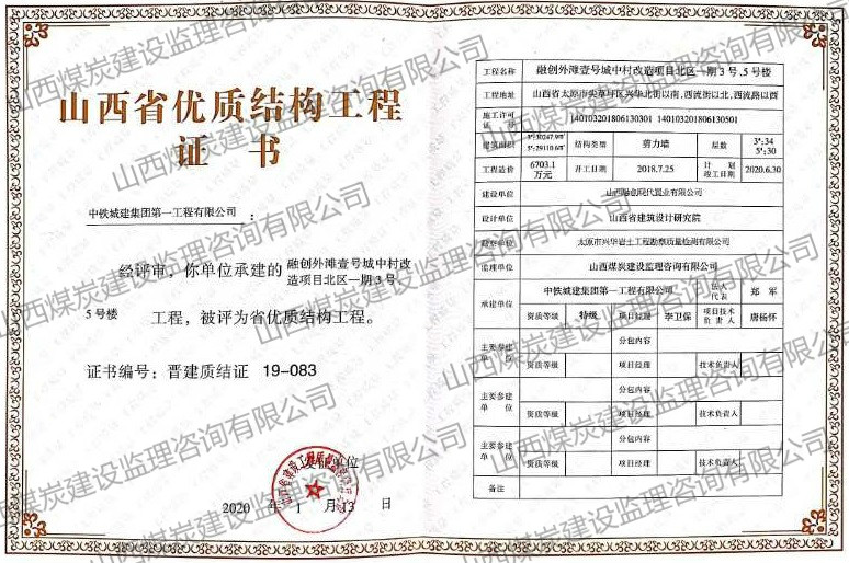 公司監(jiān)理工程喜獲山西省和太原市結(jié)構(gòu)優(yōu)質(zhì)工程獎(jiǎng)