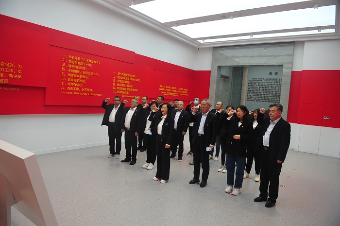 最后,在莊嚴的宣誓廳里,公司黨支部書記帶領在場黨員,面對黨旗高舉右拳,重溫入黨誓詞,作出鄭重承諾,并集體觀看了警示教育片。