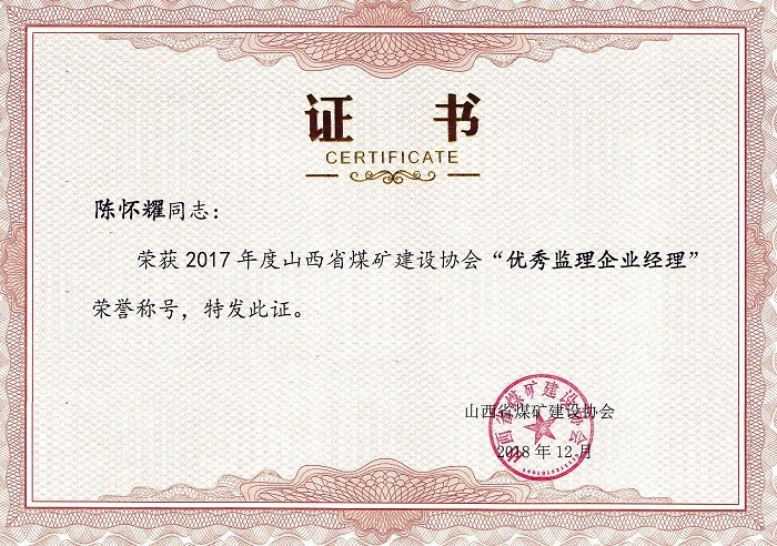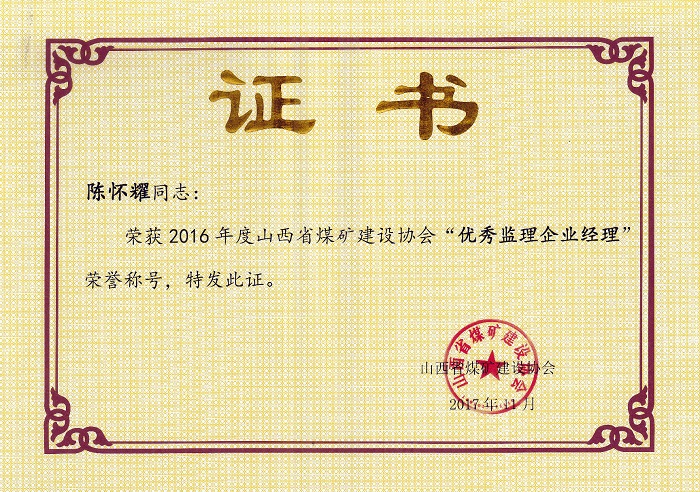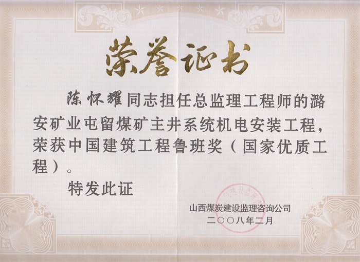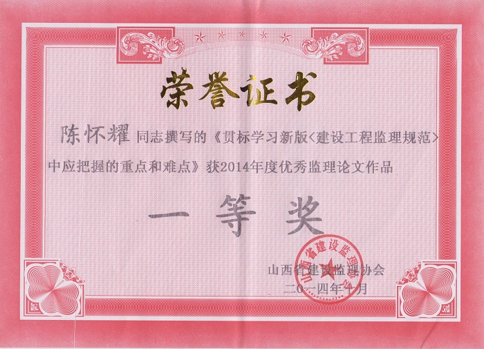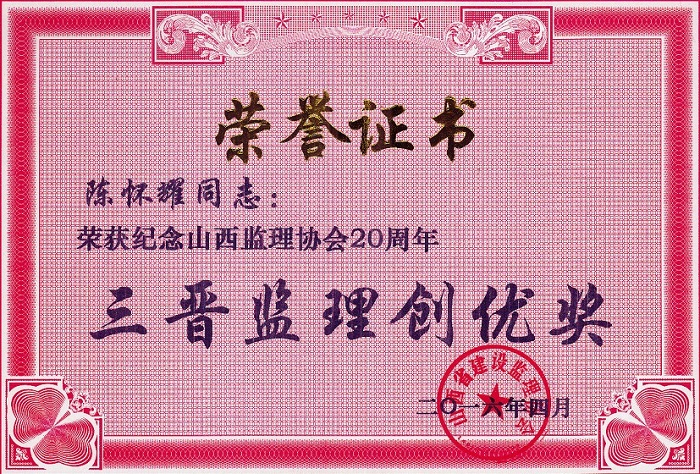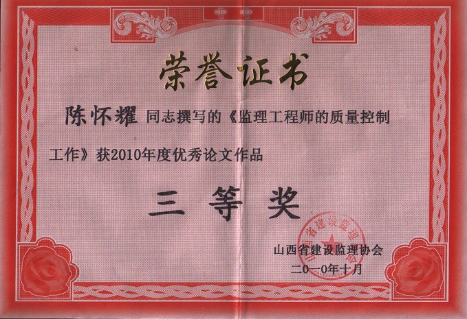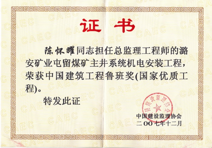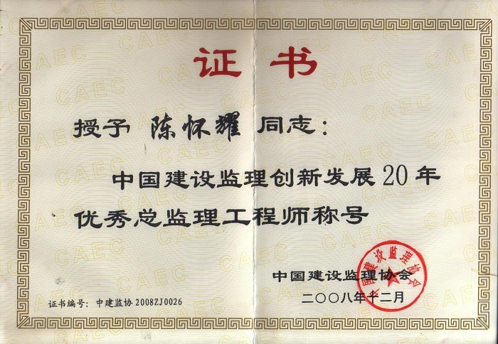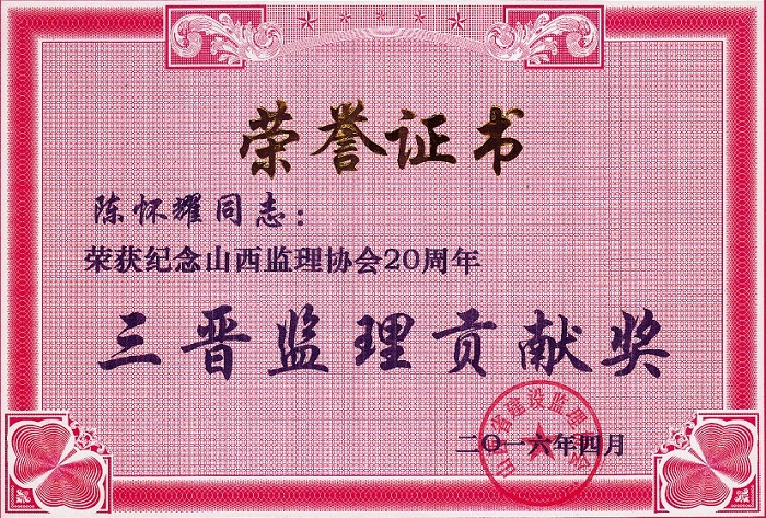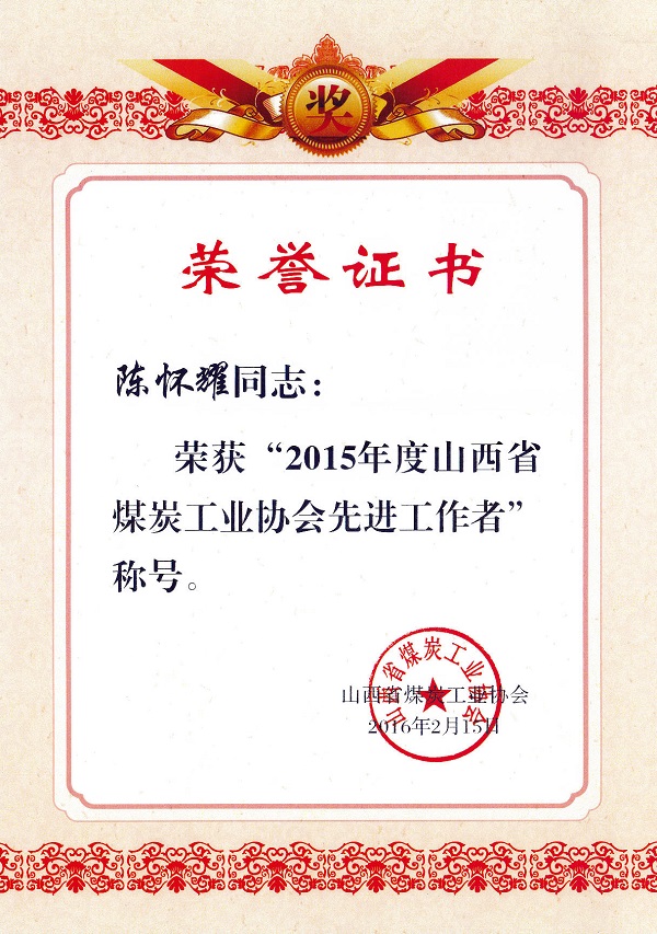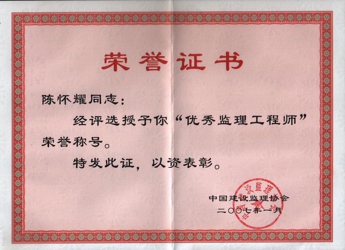 陳懷耀個(gè)人榮譽(yù)